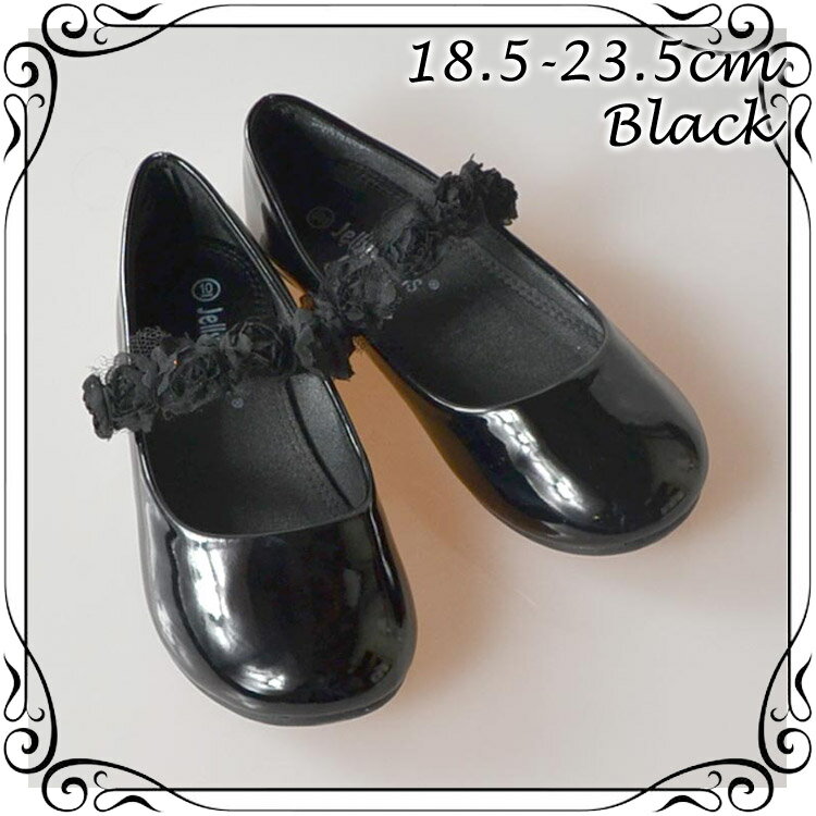 【P2倍・4月30日〜+クーポン有】フォーマル靴 フラット シューズ 女の子 ブラック 18.5-23.5cm